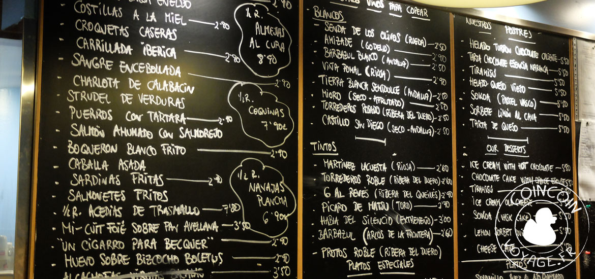 Après avoir mangé quelques « Bortadillas » au El Patio San Eloy, Coincoin se dirigea vers le nord de la ville dans le bar Espacio Eslava, un petit local dans la longueur qui offre des tapas plutôt originaux combinant sucré et salé.