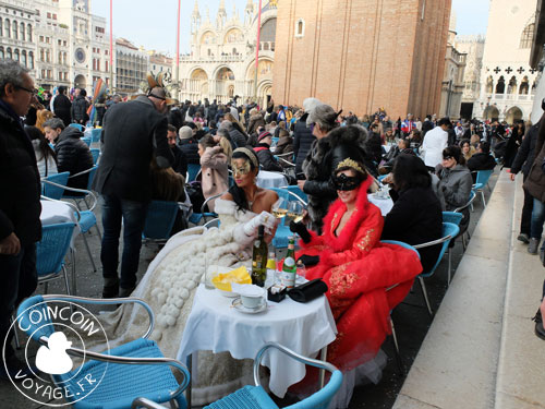 La place Saint-Marc (« San Marco ») était rempli de canards déguisés en tout genre : du Schtroumpf au costume traditionnel en passant par un costume d’arbre magique. Les canards les mieux déguisés se font encercler par les touristes qui les bombardent de photos.